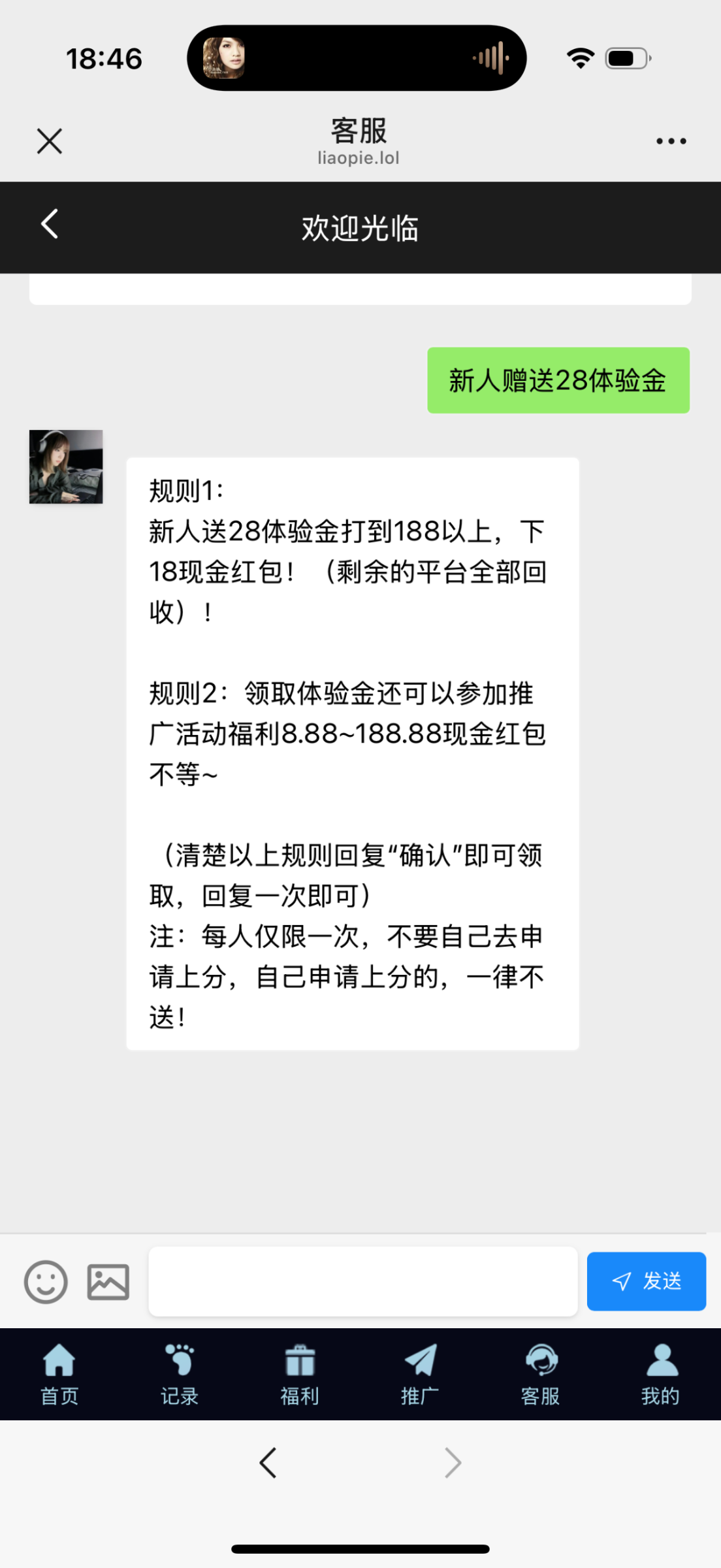 微信扫码登录联系在线客服申请送28,说结束了等人少的时候再去