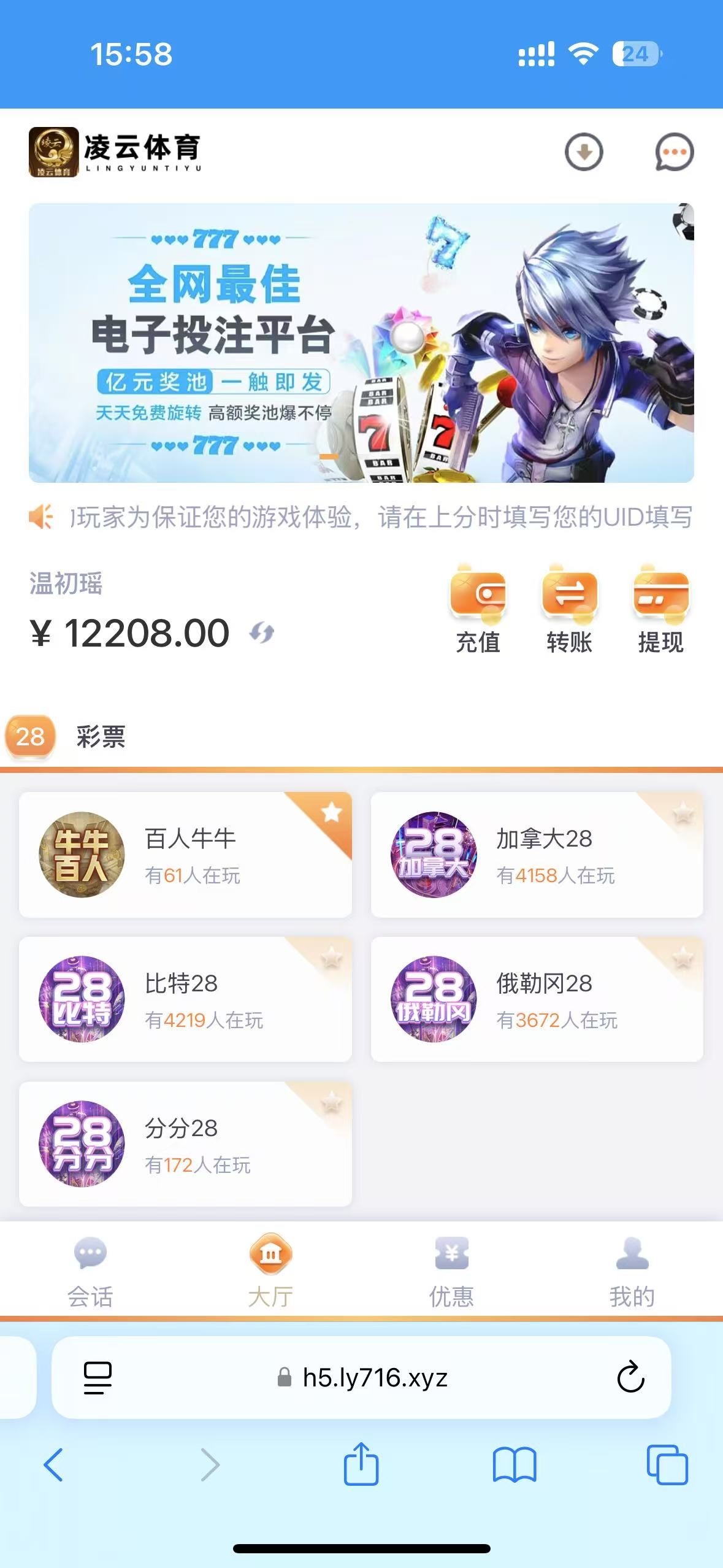 老哥们,今天旺旺注册了个台,上400送了88,一直干28,打到1.2w,提现客服叫充值,这种情况怎么搞
