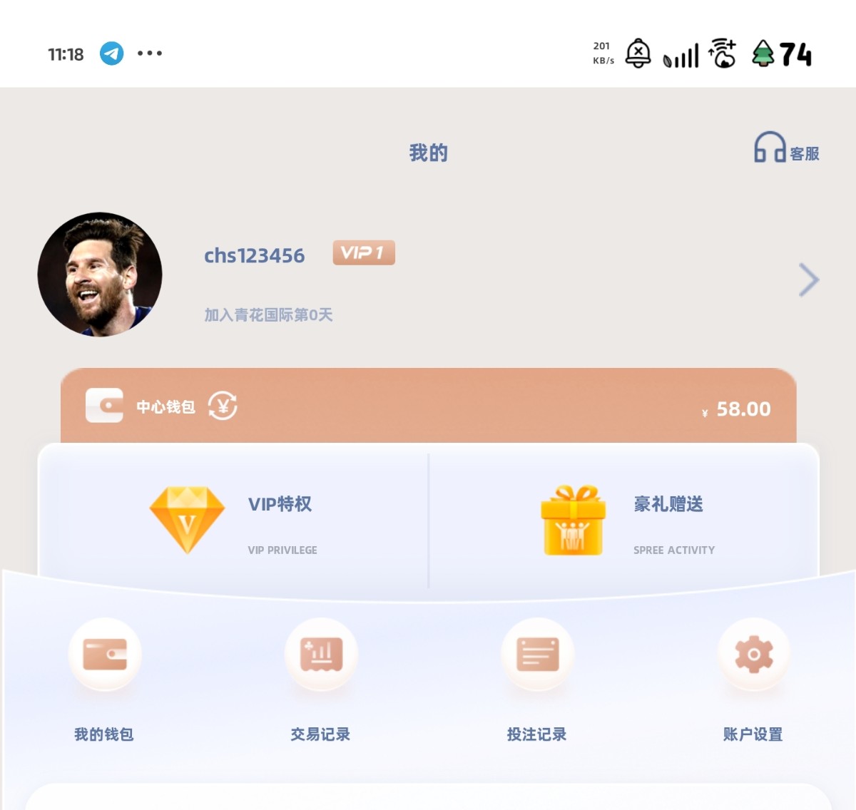 注册绑定卡活动页面申请58元注册彩金现在应该还是秒送,无流水限制.288提现地址:qh66.me