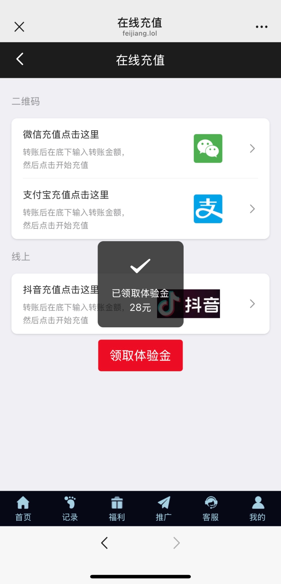 微信扫码一键登录,充值里领取体验金秒送28!