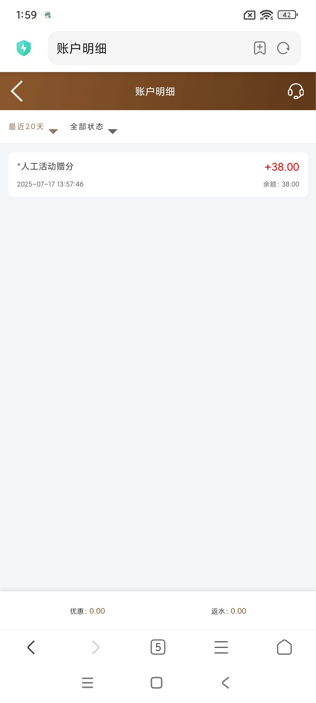 接到电话领了38,可以领四天