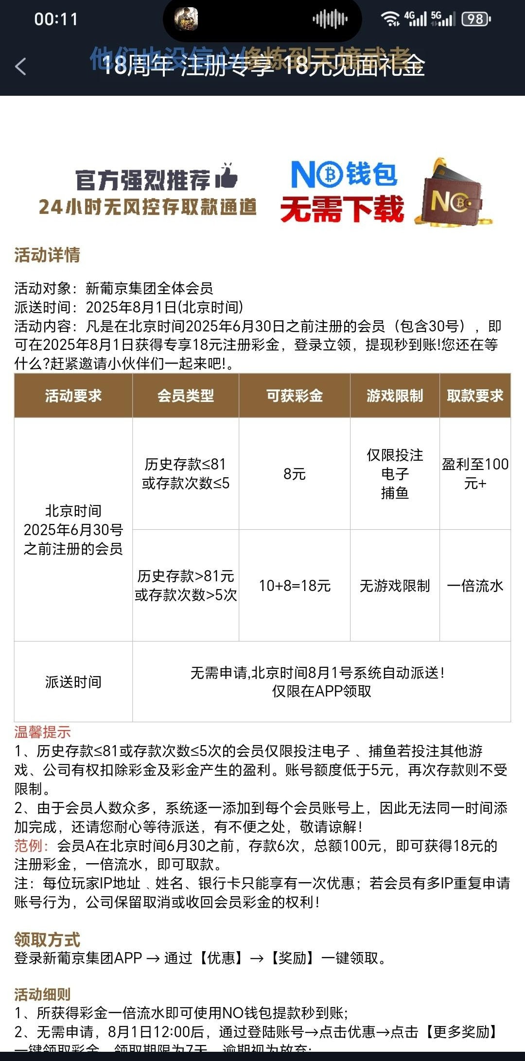 周年庆活动 12点后派发 有号的可以去看看