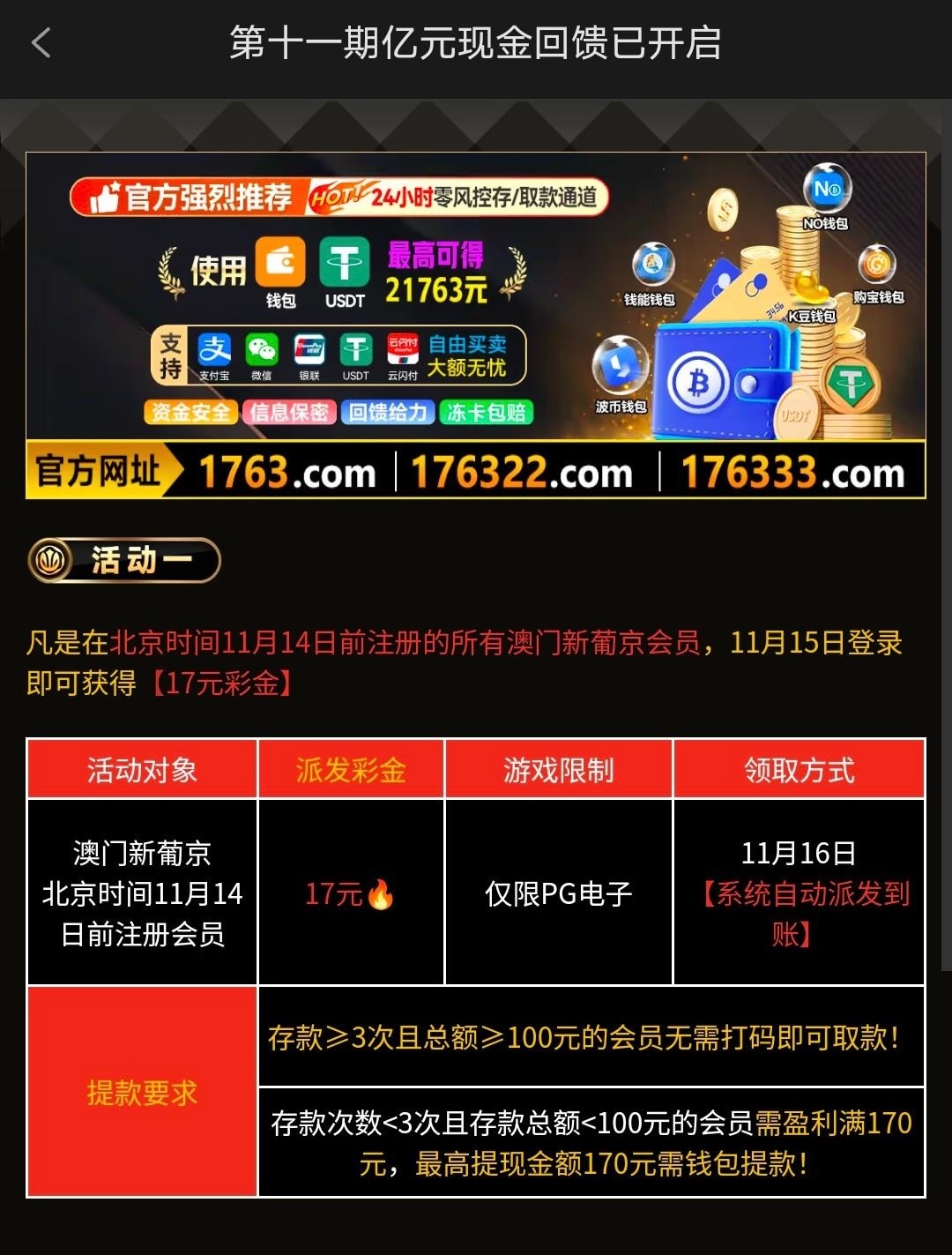 有号的登上去看看,我没充值过,跟金沙722是一样的活动,应该是一个系列的 地址 1763.com