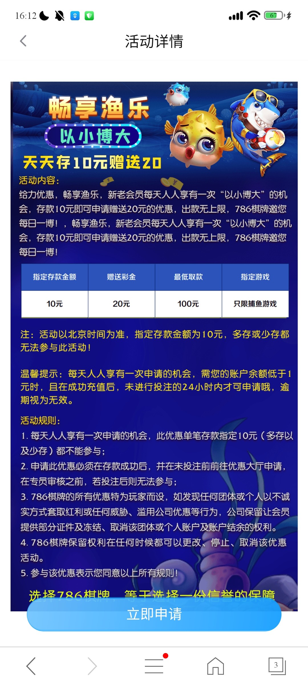 每天10+20捕鱼 风险自理不担保