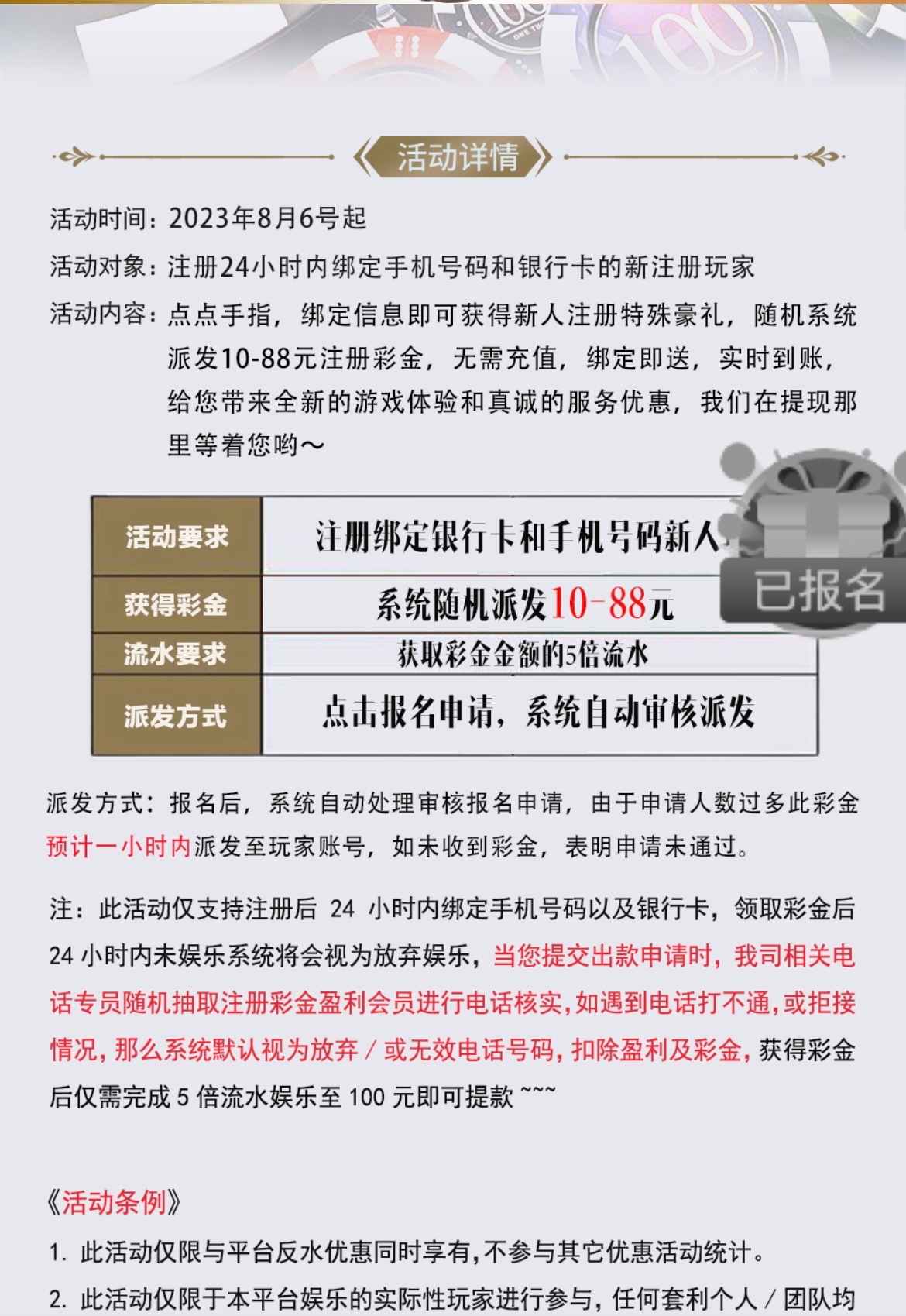 手机号注册绑卡活动新用户报名送88