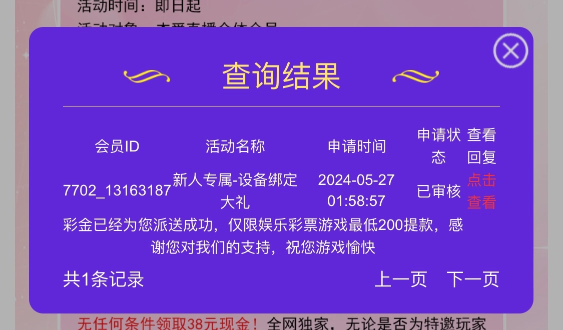 新用户注册绑定信息去优惠大厅自助申请38彩金只能彩票最低200提,具体自测吧换干净IP去申请切记勿充值。