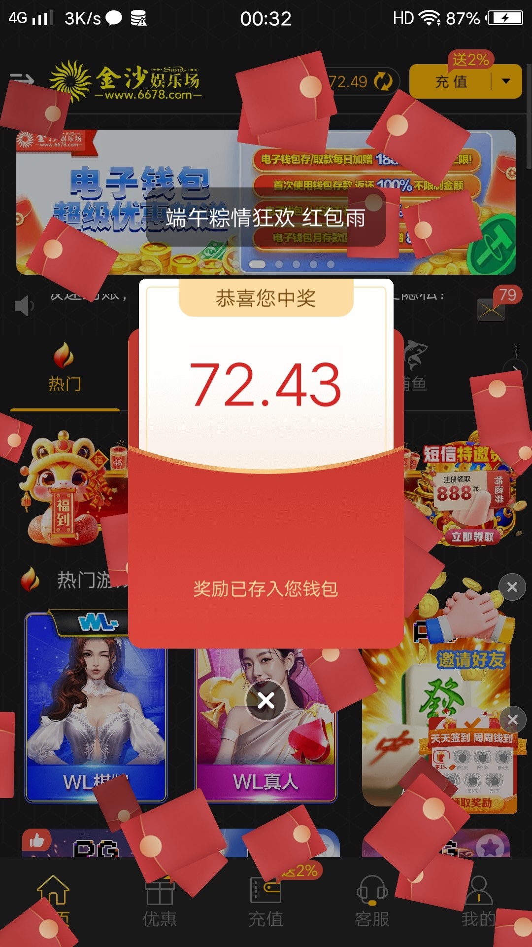 之前有账号的节假日登入领取端午狂欢彩金